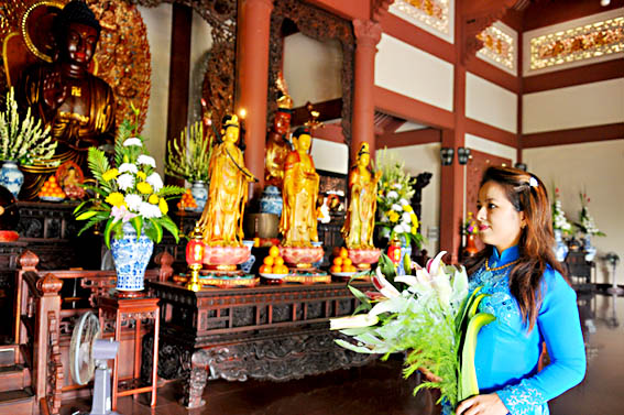 Điều 13: Người Phật tử thờ phượng ảnh tượng Phật, Bồ-tát, A-la-hán và Thánh Tăng để chiêm bái, học hỏi hạnh nguyện cao cả của quý ngài, để làm chỗ dựa tinh thần và hộ trì đạo đức cho bản thân và gia đình.