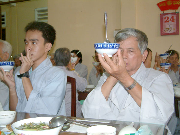 Trong luật Phật dạy: "Chư thiên ăn sớm mai, Phật ăn giờ ngọ, súc sanh ăn sau giờ ngọ, ngạ quỷ ăn tối, chư Tăng học theo Phật, phải ăn đúng giờ ngọ".