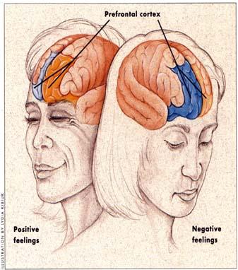 Vỏ não trước trán bên trái (màu đỏ) gia tăng hoạt  động  hạnh phúc
