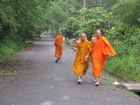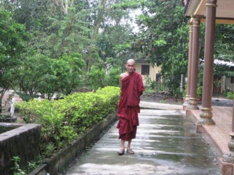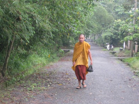 Sư Phước Nhân : Chọn một lối đi có chiều dài từ 7 đến 10m, không nên đi quá xa. Khi đi hai tay chắp lại để đằng sau lưng hoặc để trước bụng, mắt nhìn về trước khoảng 2m, tối đa là 3m, không nên nhìn quá xa, không nên liếc qua, liếc lại.