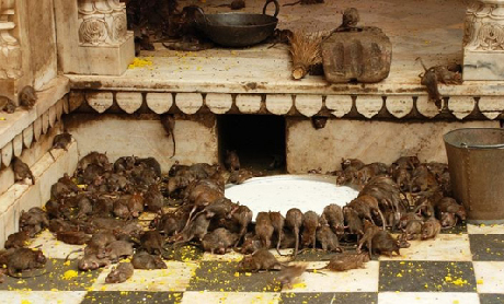 Đền Karni Mata ở Deshnoke, bang Rajasthan (Ấn Độ) có lẽ là một trong những ngôi đền kỳ lạ nhất thế giới bởi đây là nơi trú ngụ của hơn 20.000 con chuột. Đặc biệt hơn, chuột chính là loài được tôn thờ ở đây và có uy quyền hơn cả… con người.