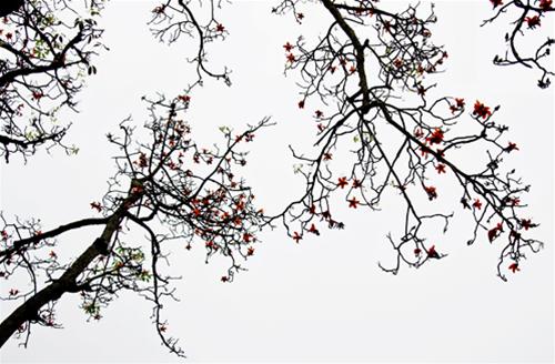 Tháng ba hoa gạo thắp đỏ những cánh đồng Bắc bộ, dù trời đất âm u và se lạnh bởi những cơn gió mùa đâu đấy cứ bất chợt ùa về.