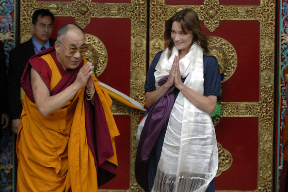 Phu nhân Tổng thống Pháp Carla Bruni-Sarkozy tươi cười lúc đuợc diện kiến Đức Đạt Lai Lạt Ma