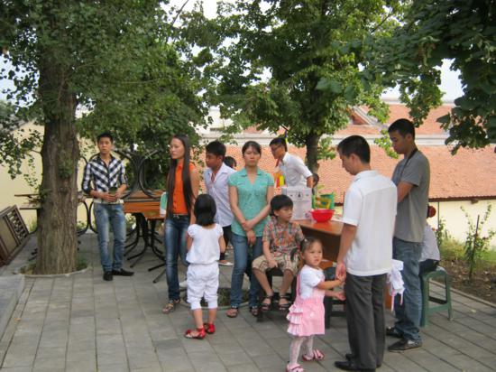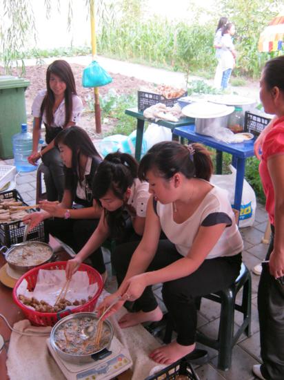Sau lễ hành chính, tất cả mọi người cùng vui vẻ thọ chay.