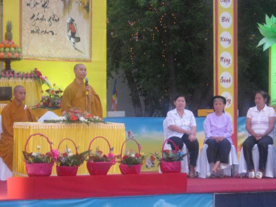 Đại đức Thích Giác Thọ và Đại đức Thích Nhuận Đăng đang hành đạo tại chùa đăng đàn khai kinh Vu Lan và giảng giải cho toàn thể hội chúng về truyền thuyết Vu Lan báo hiếu, cũng như về ý nghĩa của việc cài hoa hồng trong dịp lễ Vu Lan.