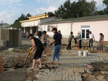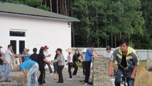 Bà Nguyễn Minh Lan, phu nhân của Tổng giám đốc và bà con cô bác kinh doanh tại TTTM AsiaDragon Svatý Kříž đang ra lao động công đức