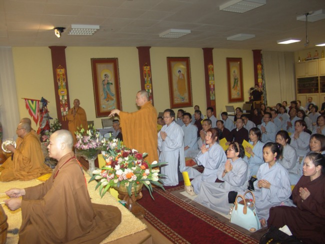 Sau khi thăm quan cơ sở vật chất của chùa, đoàn đã dự lễ cúng dường trai tăng do các phật tử chùa Vĩnh Nghiêm tp.Nürnberg long trọng cúng dường theo đúng nghi lễ truyền thống của Phật giáo.