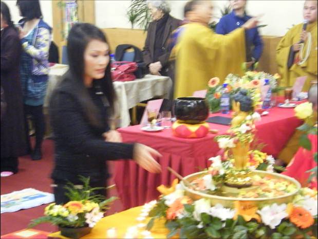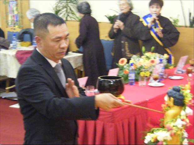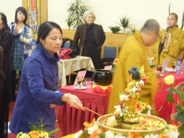 Bà Nguyễn Thị Minh Lan, chủ tịch chi Hội phụ nữ TTTM AsiaDragon Svatý Kříž TP Cheb CH Séc, người đã phát tâm công đức bồ đề cho lễ cúng thập nhị cô hồn trong buổi lễ