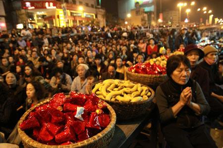 Người dân dâng sao giải hạn tràn ra đường như thế này là sự lãng phí "tài nguyên" giáo pháp của nhà chùa rất đáng trách