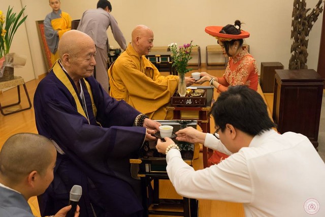 Chiều cùng ngày tại chùa cũng đồng thời diễn ra lễ hằng thuận của hai Phật tử Kim Anh kết duyên cùng Anh Quang và buổi trà đạo với sự chứng minh và chúc phúc của HT.YoshiMidu Daichi cùng TT.Thích Thanh Định cho hai Phật tử Kim Anh - Anh Quang.