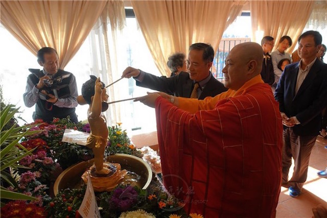 Đại sứ quán Nam Phi cùng Pháp sư Trụ trì Nam Hoa Thiền Tự, đồng tắm Phật, cùng hoan hỷ Kính mừng Ngày Phật Đản sinh lần thứ 2639 tại Nam Hoa Thiền Tự, Nam Phi