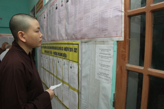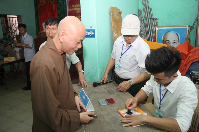 Đúng 7 giờ, ngay sau khai mạc cuộc bầu cử, chư tôn đức cùng cử tri tại địa bàn đã bỏ phiếu bầu những ứng cử viên vào Quốc hội và HĐND các cấp.