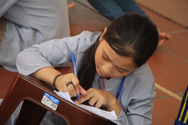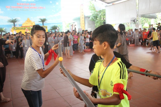 Trong ngày thứ ba, 05/06/2016 (01/05/Bính Thân), nhiều nội dung hết sức sôi động đã diễn ra để lại nhiều ấn tượng đối với các em nhỏ. Trong giờ công phu sáng, sau thời khóa niệm Phật, đọc hai mươi lời nhớ ơn, các em đã được tập thể dục theo tiếng niệm Phật.. Điểm nhấn của ngày cuối cùng chính là những giây phút các em trải lòng mình, viết nhật ký về ba ngày tham dự khóa tu “Nụ thương sen hồng”. Những chia sẻ rất thật, ngây thơ, hồn nhiên của các em làm không khí ngày tu thêm náo nhiệt. Thời giảng pháp của Thượng tọa trụ trì Thích Thanh Định càng giúp các em thấm thía hơn ân tình của hai đấng sinh thành đối với mỗi người con.