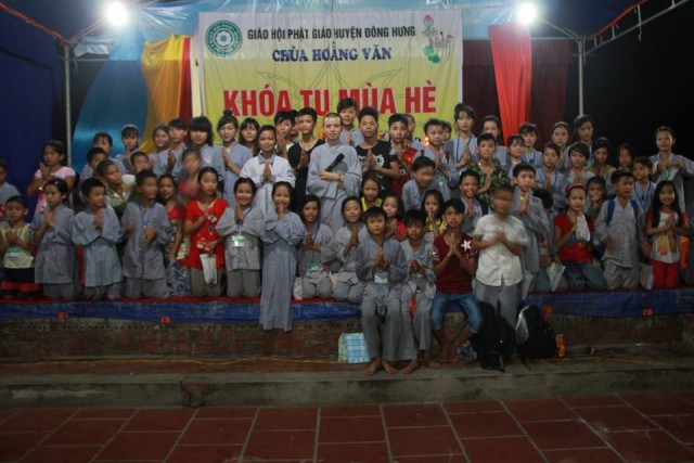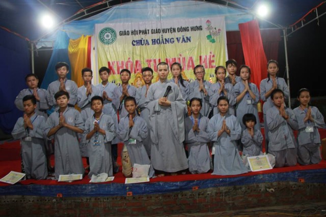 Ngày 17/07/2016 (14/06/Bính Thân), hơn 200 em thiếu nhi đang tham dự khóa tu mùa hè “Ươm mầm Phật pháp” lần thứ nhất tại chùa Hoằng Văn (thôn Hoành Từ, Đông Cường, Đông Hưng) đã có ngày tu tập thứ hai thật ý nghĩa và bổ ích với nhiều chương trình hấp dẫn: thi gameshow giáo lý, thi vẽ tranh thuyết trình.