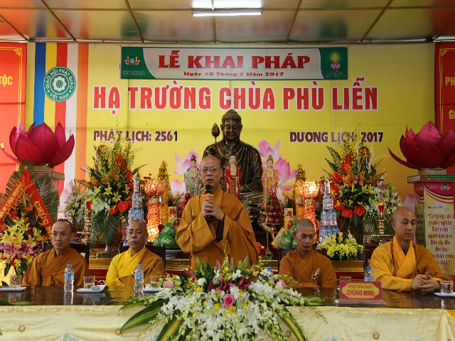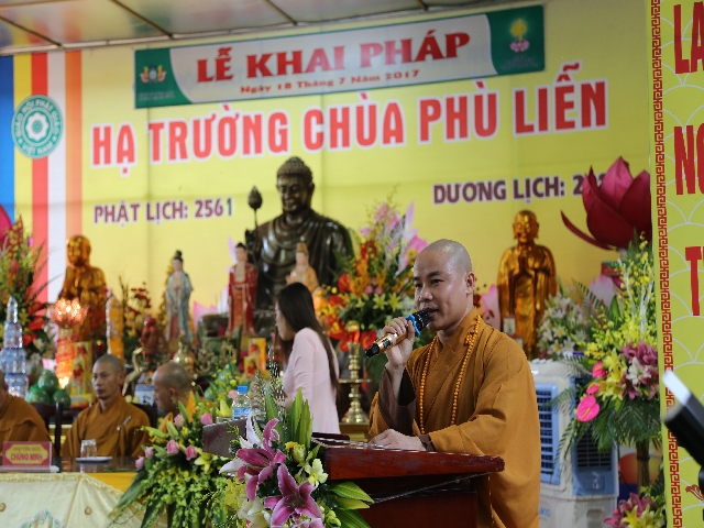 TT Thích Nguyên Thành chia sẻ với hội chúng : " Năm nay Phật giáo tỉnh Thái Nguyên tổ chức nhiều chương trình phật sự quan trọng, trong đó tiến tới Đại Hội Đại Biểu Phật Giáo Tỉnh Khoá IV (NK 2017-2022)là phật sự quan trọng. Đồng thời Phật giáo tỉnh nhà còn phối hợp với Trung Ương Giáo Hội tổ chức Đại lễ kỉ niệm 70 năm ngày thành lập Thương binh Liệt sỹ ( 27/7/1947 - 27/7/2017) cầu siêu các Anh Linh Anh Hùng Liệt Sỹ tại xóm Bàn Cờ, Thị trấn Hùng Sơn, Huyện Đại Từ. Vào ngày 25/ 7/ 2017 tức (ngày 3 tháng 6 nhuận)Thế nhưng với tinh thần Lục hòa cộng trụ hàng đệ tử Như Lai, Tăng ni trên toàn Tỉnh đã vân tập về Trụ sở Hạ Trường Chùa Phù Liễn tác pháp đối thú an cư theo luật Phật đã chế, nhằm trưởng dưỡng lòng từ bi đối với chúng sinh muôn loài và tiến tu hạnh giải thoát".