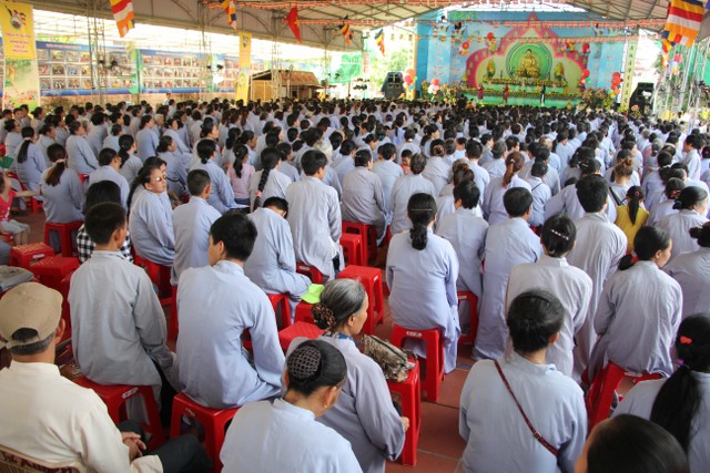 Toàn thể đạo tràng lắng nghe thông điệp Phật đản