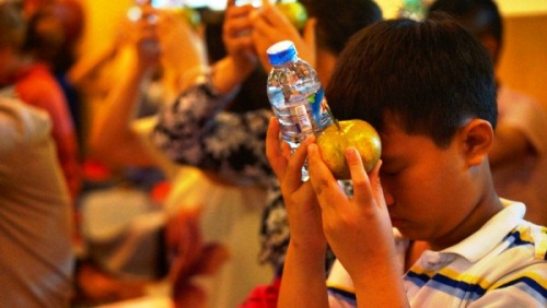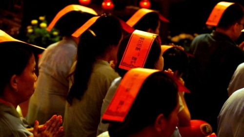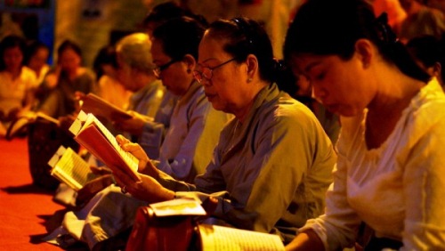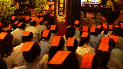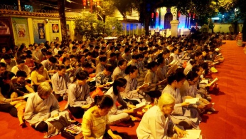 Ngoài sân chùa, gần 500 phật tử khắp nơi về kỳ nguyện Quốc thái Dân an