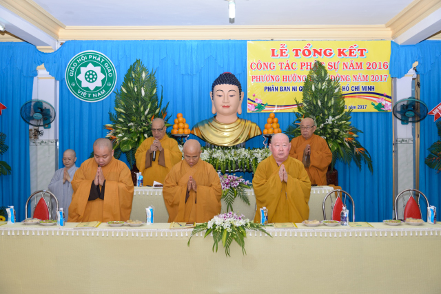 Cuối cùng là lời phát biểu cảm tạ và hồi hướng, Hội nghị tổng kết công tác Phật sự năm 2016 và đề ra phương hướng hoạt động của Phân Ban Ni giới Tp. HCM thành tựu tốt đẹp.