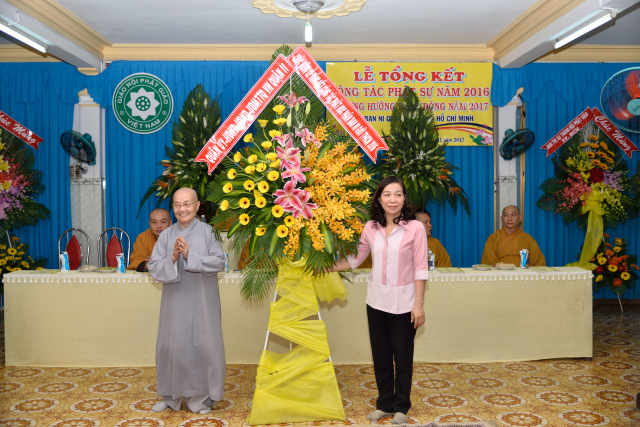Sau lời phát biểu của Ni trưởng phó trưởng Phân Ban, hội nghị cũng đã đón nhận những lẵng hoa của các ban, ngành gửi đến chúc mừng Hội nghị tổng kết.