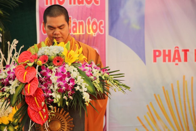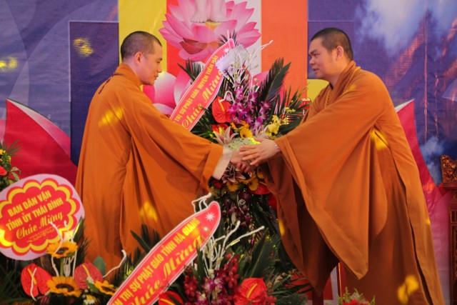 Tại buổi lễ, TT.Thích Thanh Hòa thay mặt cho chư tôn đức tuyên đọc“Thông điệp của Đức Pháp chủ HĐCM GHPGVN gửi Tăng, Ni, cư sĩ Phật tử Việt Nam nhân dịp Đại lễ Phật đản PL.2561-DL.2017”, nhắn nhủ xây dựng tổ chức vững mạnh, tạo nền tảng cho sự bền vững của giáo hội. Tiếp đó, ĐĐ.Thích Trí Sử, Trưởng BTS PG TP.Thái Bình, Trưởng ban tổ chức Đại lễ tuyên đọc diễn văn Phật đản của Hòa thượng Chủ tịch HĐTS, nêu cao trọng trách của mỗi sứ giả Như Lai trong việc duy trì mạng mạch Phật pháp và tạo nên tập thể Tăng già hòa hợp – thanh tịnh. Dịp này, chư tôn đức chứng minh, quý quan khách, đại diện Phật tử đã tặng hoa chúc mừng BTS PG thành phố nhân dịp Đại lễ Phật đản.