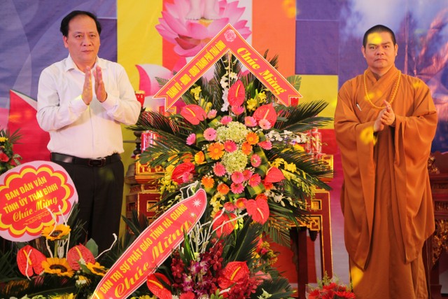 Đến chứng minh, tham dự Đại lễ có: HT.Thích Thanh Dục, Uỷ viên Thường trực HĐCM, Chứng minh BTS PG tỉnh Thái Bình; TT.Thích Thanh Hòa, UV HĐTS, Trưởng BTS PG tỉnh; TT.Thích Thanh Định, UV HĐTS, Phó ban Thường trực BTS PG tỉnh; ĐĐ.Thích Thanh Vượng, Phó BTS PG tỉnh; ĐĐ.Thích Trí Sử, Trưởng BTS PG TP.Thái Bình, Trưởng ban tổ chức Đại lễ; cùng chư tôn đức Tăng, Ni BTS PG các huyện, thành phố trong tỉnh; chư tôn đức trụ trì các tự viện trên địa bàn thành phố.