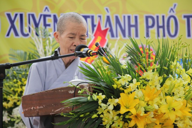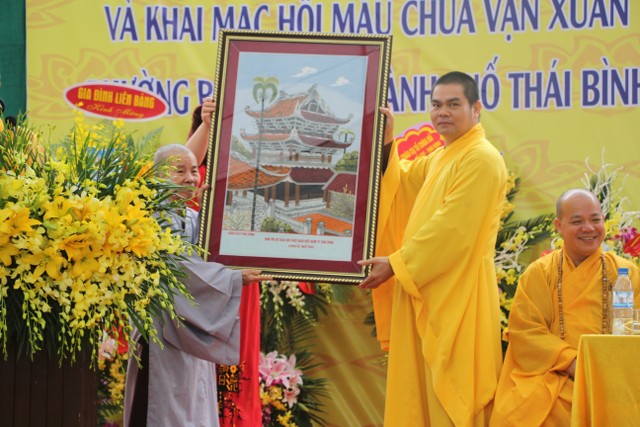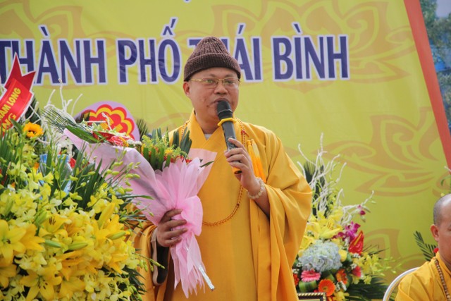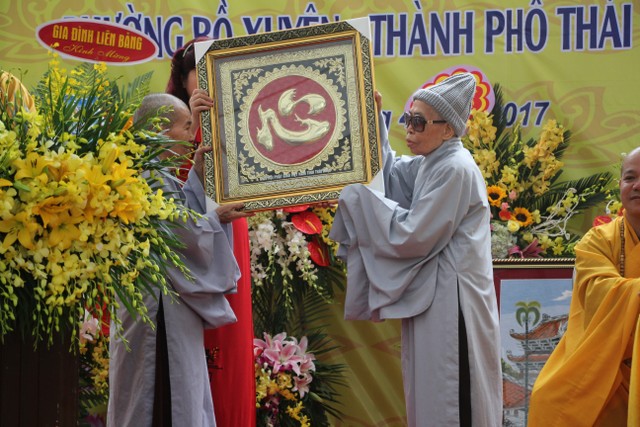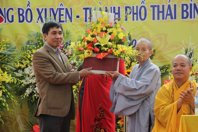 Buổi lễ vinh dự đón tiếp ông Đỗ Đình An, Ủy viên ban Thường vụ Tỉnh ủy, Bí thư Thành ủy; ông Nguyễn Ngọc Ý, Chủ tịch UBND TP.Thái Bình, ông Bùi Hữu Nam, Phó Bí thư Thường trực Thành ủy; bà Nguyễn Thị Thúy Mai, Phó Chủ tịch Thường trực UBND TP.Thái Bình; đại diện chính quyền phường Bồ Xuyên và gần 300 Phật tử về dự lễ.