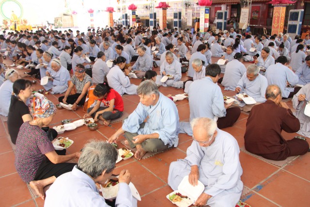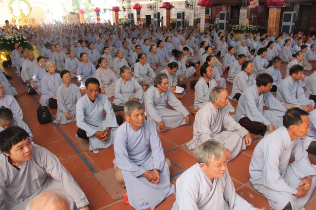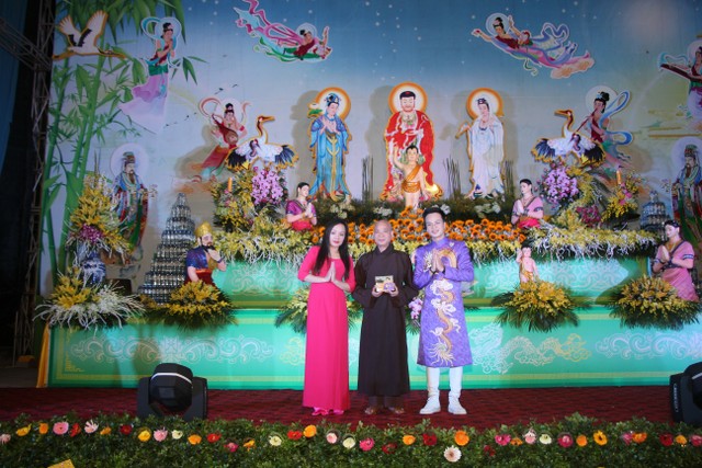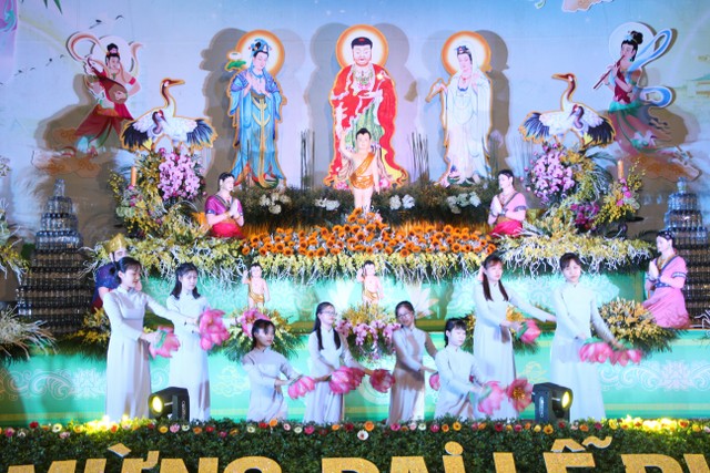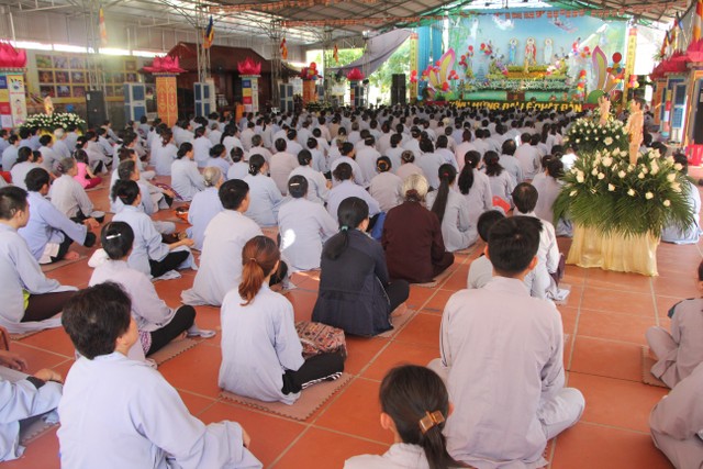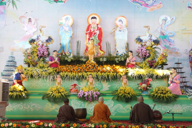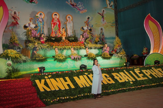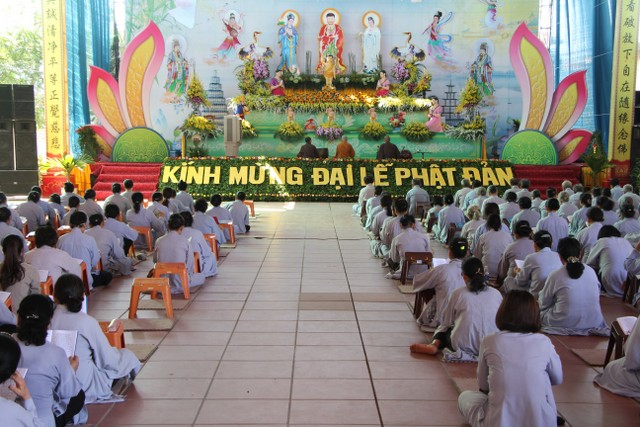 Bên cạnh đó, có gần 200 thiện nam tín nữ đã được chư Tăng làm lễ quy y Tam Bảo. Các Phật tử đã tụng kinh “Tám Điều”, “kinh Từ Tâm”, kinh “Khánh đản”, cùng nhau ôn lại những lời dạy vàng ngọc của đức Phật, hồi hướng cầu nguyện quốc thái dân an, thế giới hòa bình, nhân dân an lạc, người người biết đến Phật pháp. Ngoài ra, trong chương trình còn có đêm văn nghệ và hội thi giáo lý kính mừng Đại lễ Phật đản.