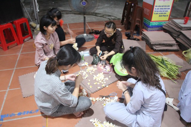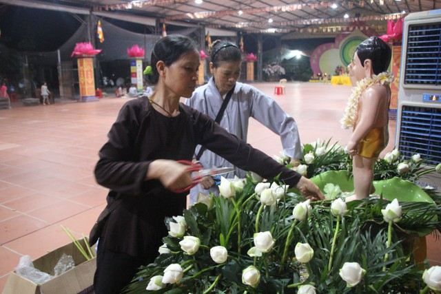 Các Phật tử chuẩn bị cho lễ tắm Phật
