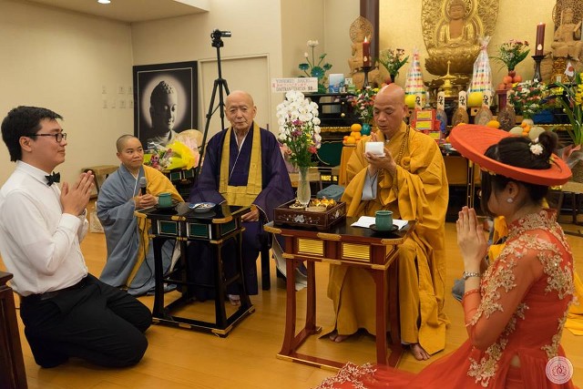 Chiều cùng ngày tại chùa cũng đồng thời diễn ra lễ hằng thuận của hai Phật tử Kim Anh kết duyên cùng Anh Quang và buổi trà đạo với sự chứng minh và chúc phúc của HT.YoshiMidu Daichi cùng TT.Thích Thanh Định cho hai Phật tử Kim Anh - Anh Quang.