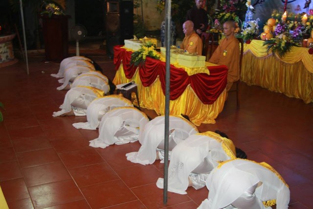 Đại chúng lắng nghe lời đạo từ của Thượng tọa chứng minh