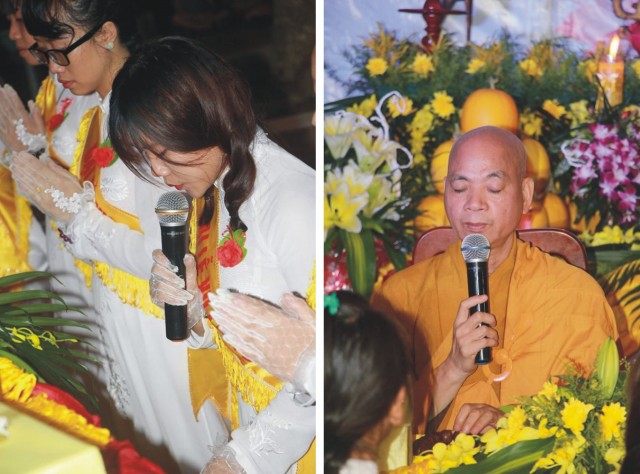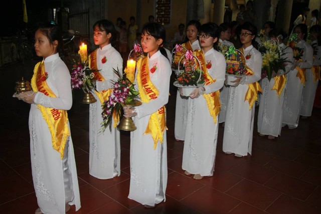 Sau nghi thức niêm hương bạch Phật, dâng lục cúng dàng, Phật tử Nguyễn Lan đã diễn đọc về ý nghĩa cài hoa hồng trong niềm xúc động của mọi người. Giờ đây, những hình ảnh thân thương của mẹ cha đã được tái hiện lại trong từng dòng chữ, từng câu thơ,… Sự nhọc nhằn vất vả, nuôi nấng, dạy bảo,… khiến cho người nghe không khỏi chạnh lòng mà sa hai hàng lệ. Trong giờ phút thiêng liêng ấy, toàn thể đạo tràng đã dành một phút mặc niệm để tưởng nhớ về thâm ân to lớn của chư Phật, công ơn giáo dưỡng muôn một của thầy tổ bổn sư, các vị thánh tử đạo đã quên mình vì đạo pháp. Bên cạnh đó cũng là tưởng nhớ đến ơn đất nước đồng bào, ơn chúng sanh vạn loại, liệt vị tiền bối hữu công, chân linh cửu huyền thất tổ, cha mẹ nhiều đời nhiều kiếp.