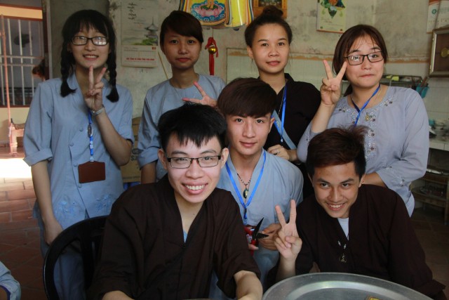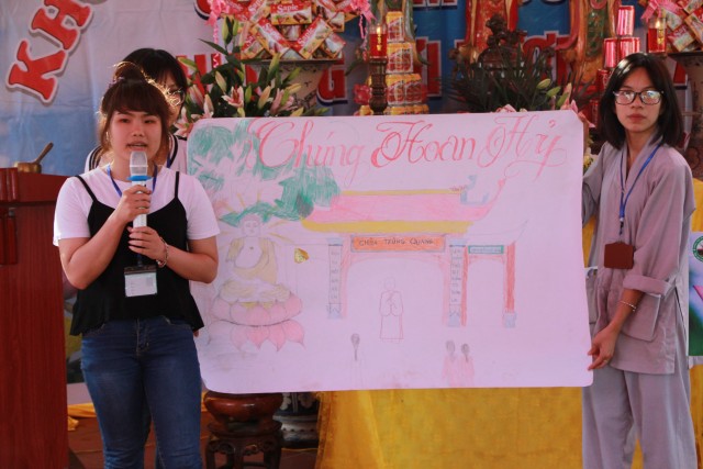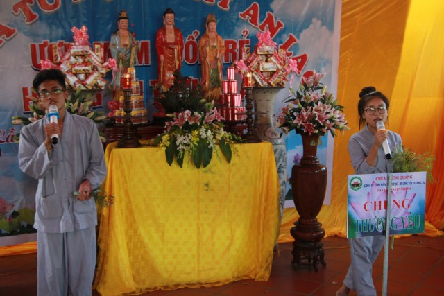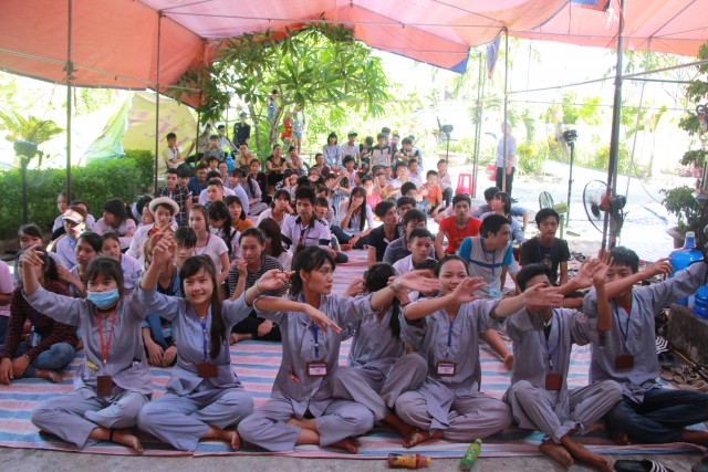 Ngay từ sáng sớm, BTC khóa tu đã bố trí các bàn đăng ký thiện sinh ở trước chính điện. Các bạn đã được BTC tiếp nhận, sắp xếp chỗ gửi đồ, nhận thẻ và phân chúng. Sau đó, các bạn đã nhanh chóng vân tập về giảng đường nghe phổ biến thời khóa tu tập.