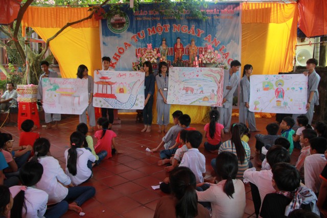Buổi chiều cùng ngày, đại chúng được cung nghinh TT.Thích Thanh Định, UV HĐTS GHPGVN, Phó ban Thường trực BTS GHPGVN tỉnh Thái Bình quang lâm giảng đường. Thượng tọa đã có thời pháp nhũ với chủ đề “Hãy là người con có hiếu”. Qua các câu chuyện về đạo hiếu, công ơn cha mẹ, quý Thầy muốn nhắn gửi tới các bạn trẻ thông điệp của lòng hiếu thảo, tình yêu thương cha mẹ mình. Sau bài giảng, các bạn trẻ cùng tham gia cuộc thi vẽ tranh thuyết trình về chủ đề “Tuổi trẻ với mái chùa”, tham gia các trò chơi, Khóa tu kết thúc lúc 18h00 cùng ngày trong sự hoan hỷ của quý thầy, các anh chị tình nguyện viên và các bạn thiện sinh tham gia.