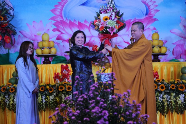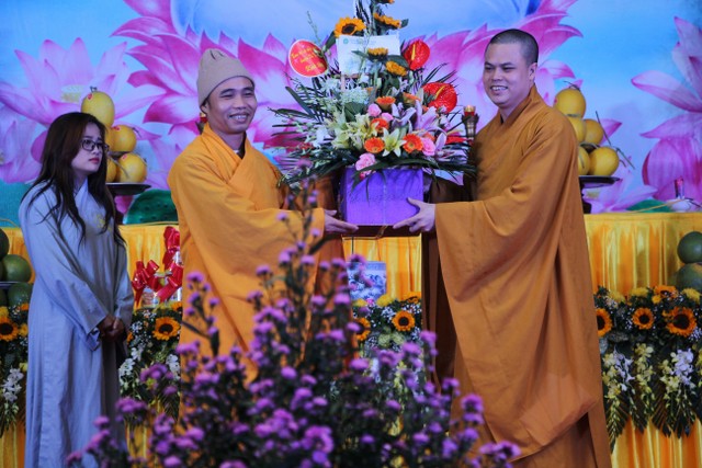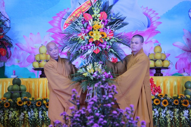 Chư tôn đức tặng hoa chúc mừng Đại đức trụ trì