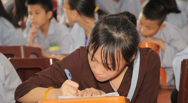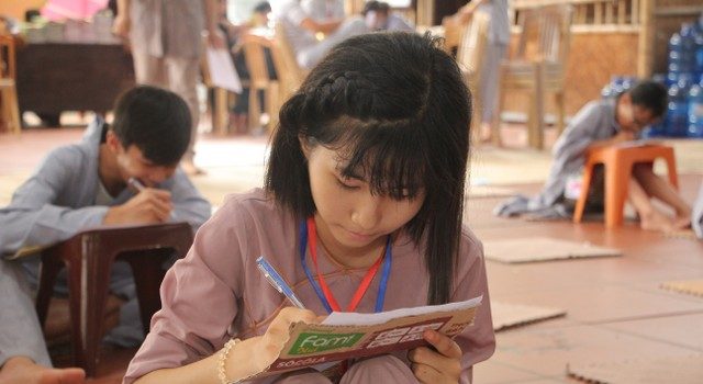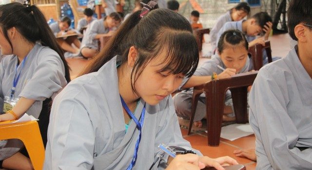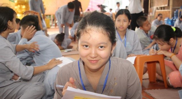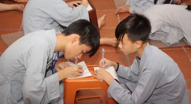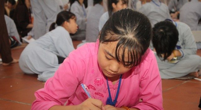 Trong giờ công phu sáng, sau thời khóa niệm Phật, đọc hai mươi lời nhớ ơn, các em đã được nghe chia sẻ của ĐĐ.Thích Nhuận Tâm về phương pháp tu tập chuyển hóa khi các em phải đối mặt với phiền não, lo âu và bất an. Điểm nhấn của ngày cuối cùng chính là những giây phút các em trải lòng mình, viết nhật ký về ba ngày tham dự khóa tu “Nụ thương sen hồng”. Những chia sẻ rất thật, ngây thơ, hồn nhiên của các em làm không khí ngày tu thêm náo nhiệt.