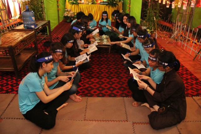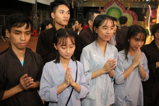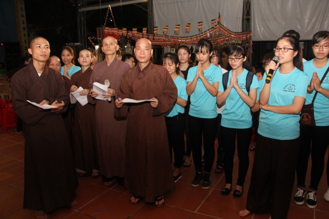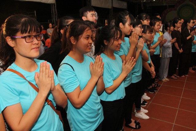 Đúng 19h00, quý Thầy đã đi chấm trại của 5 nhóm với các tiêu chí: thuyết trình, nội dung, hình thức, ý tưởng sáng tạo, ý thức. Tiếp ngay sau đó là những tiết mục văn nghệ vui nhộn, hấp dẫn của các bạn tới từ CLB TNPT chùa Văn Môn (Vũ Vân, Vũ Thư), chùa Hoàng Kim; gia đình Tâm Đức (Đại học Y Dược Thái Bình); gia đình Thiện Tâm (sinh viên CĐ Y – CĐ Sư phạm), gia đình Bình An (Tiền Hải); gia đình Đoàn Kết (TP.Thái Bình); gia đình Đông Hưng Xanh (Đông Hưng) mang lại.
