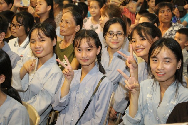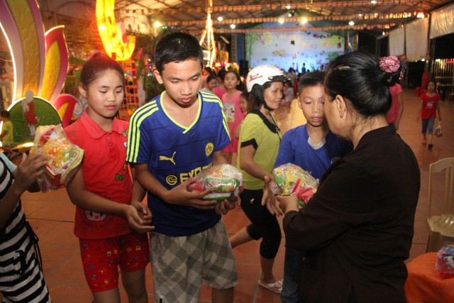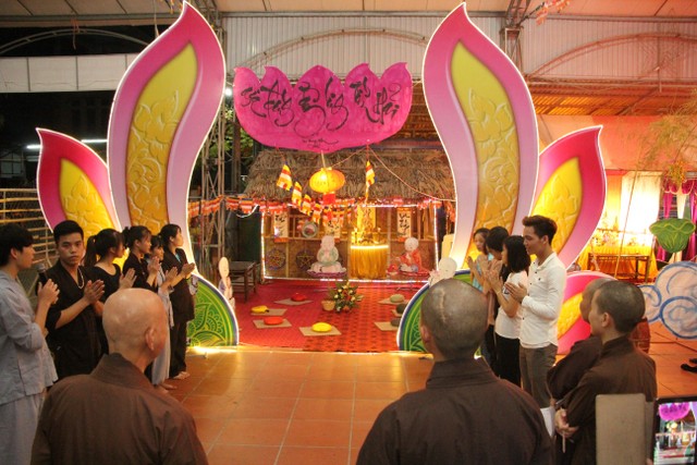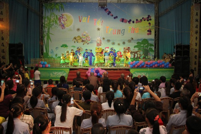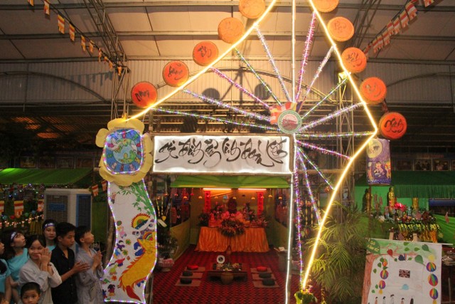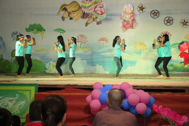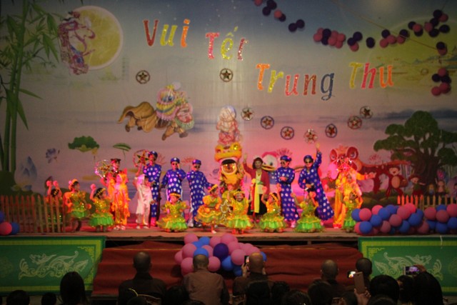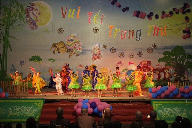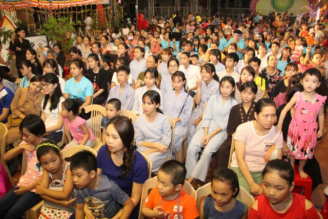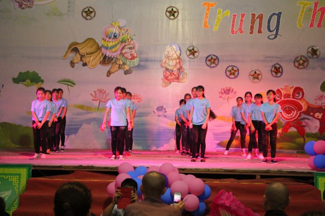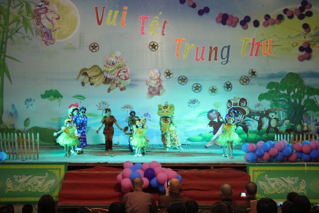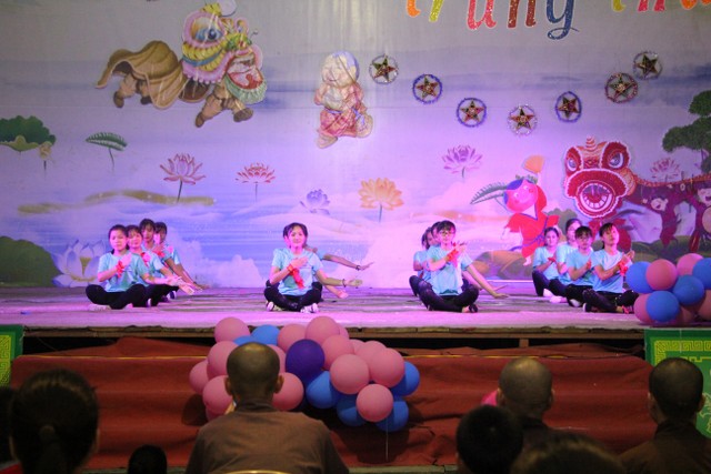 Trong đêm trung thu, các bạn thanh thiếu niên và các em nhỏ đã dâng lời ca tiếng hát, điệu múa của mình cúng dường Tam Bảo, tạo ra đêm nhạc nhiều màu sắc. Sau đó, chư Tôn đức đã làm lễ phá cỗ và phát quà cho các em nhỏ. Hơn 20 tiết mục dàn dựng công phu của các bạn nhỏ lần lượt được trình diễn, dưới sự cổ vũ cũng như động viên vô cùng to lớn từ quý khán giả, đã đem lại một “Đêm hội trăng rằm” vô cùng hấp dẫn, thắm đượm tình thương mà quý thầy cũng như phụ huynh dành cho thế hệ trẻ - chủ nhân tương lai của đất nước. Cuối chương trình, quý Thầy đã trao thưởng chương trình thi cắm trại, thi nấu ăn và phát quà cho các cháu về chùa dự đêm liên hoan.