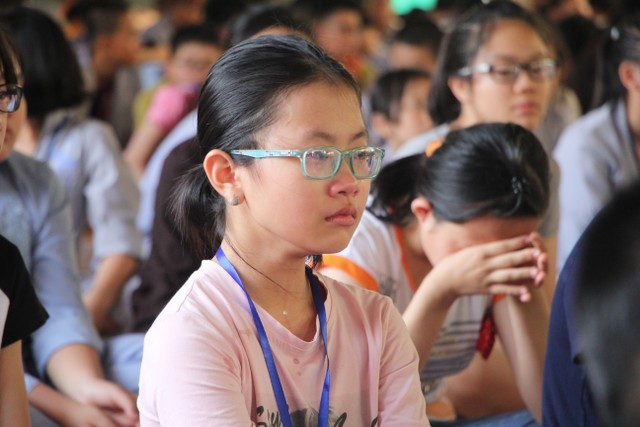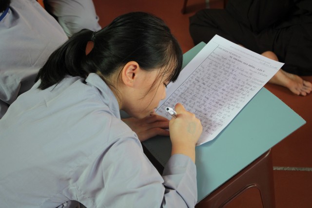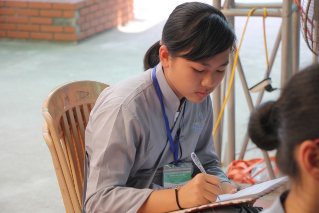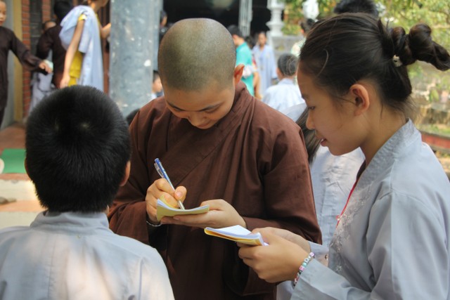 Trong ngày thứ ba, 28/05/2017 (03/05/Đinh Dậu), nhiều nội dung hết sức sôi động đã diễn ra để lại nhiều ấn tượng đối với các em nhỏ. Trong giờ công phu sáng, sau thời khóa niệm Phật, đọc hai mươi lời nhớ ơn, các em đã được quý Thầy hướng dẫn một số động tác thể dục vận động, rèn luyện sức khỏe và cân bằng tâm lý, hướng dẫn các bạn một số phương pháp thực tập Phật pháp tại gia đình để luôn chính niệm, tỉnh thức, sống có ý nghĩa. Điểm nhấn của ngày cuối cùng chính là những giây phút các em trải lòng mình, viết nhật ký về ba ngày tham dự khóa tu “Nụ thương sen hồng”. Những chia sẻ rất thật, ngây thơ, hồn nhiên của các em làm không khí ngày tu thêm náo nhiệt.