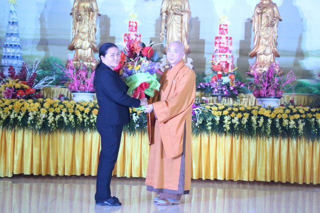 Buổi lễ vinh dự đón tiếp quý vị lãnh đạo: ông Trần Tiến Chinh, Phó Chủ tịch UBND xã; ông Nguyễn Thế Bê, Bí thư Đảng ủy, Giám đốc Bệnh viện Phong – Da liễu Văn Môn; đại diện chính quyền xã Vũ Vân, thôn Cộng Đồng; Linh mục Nguyễn Hữu Phước, Quản nhiệm họ giáo Đông Thọ và gần 500 Phật tử về dự lễ.
