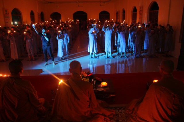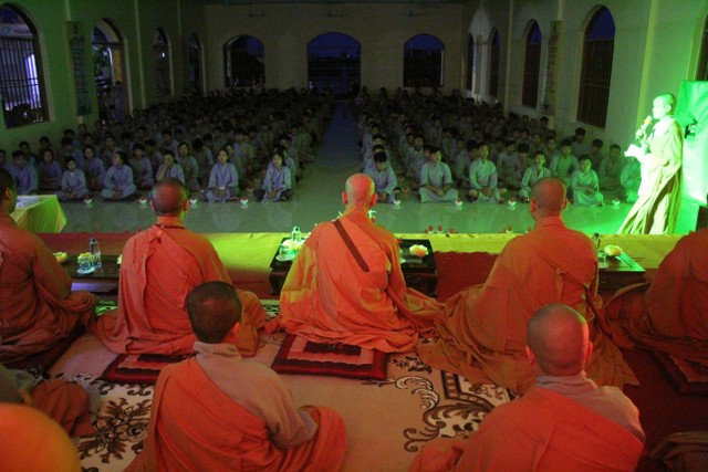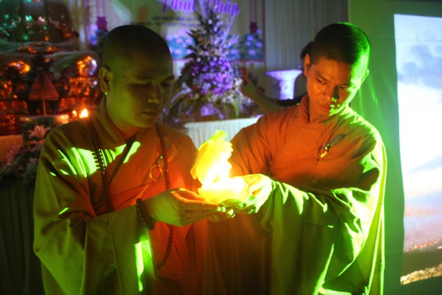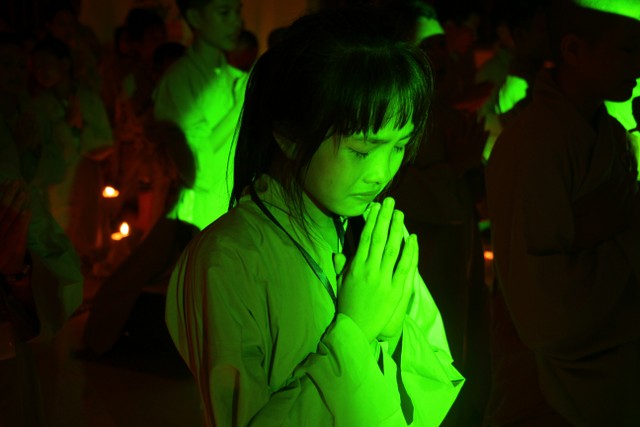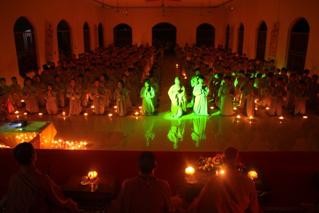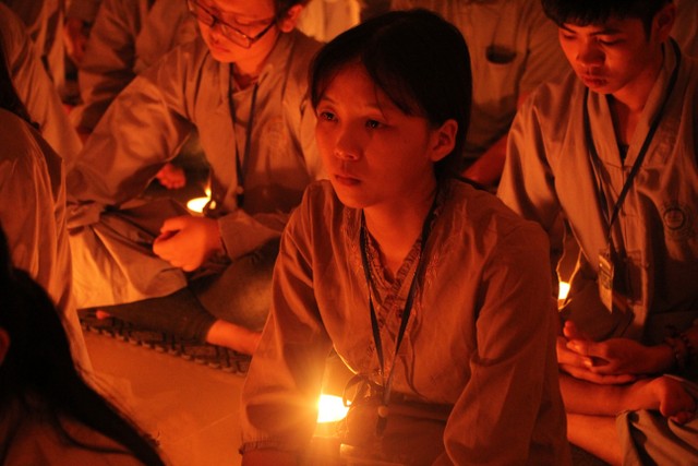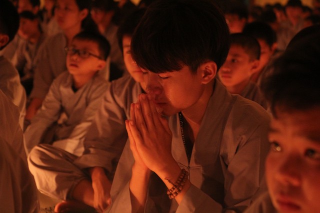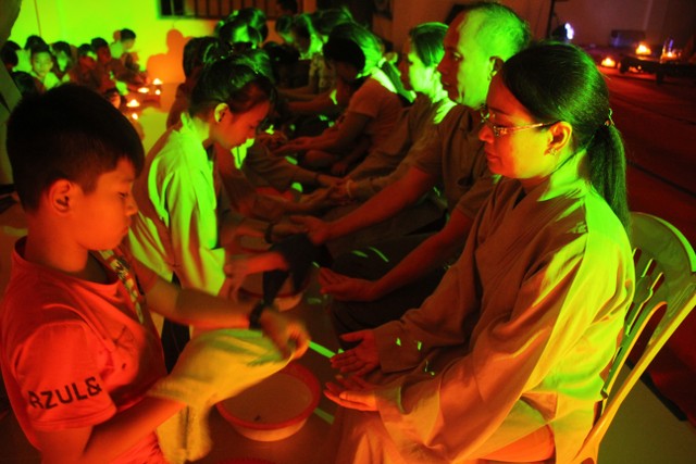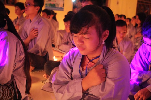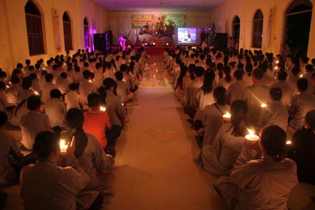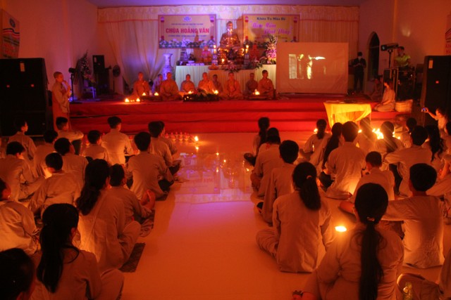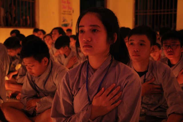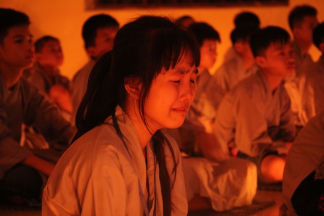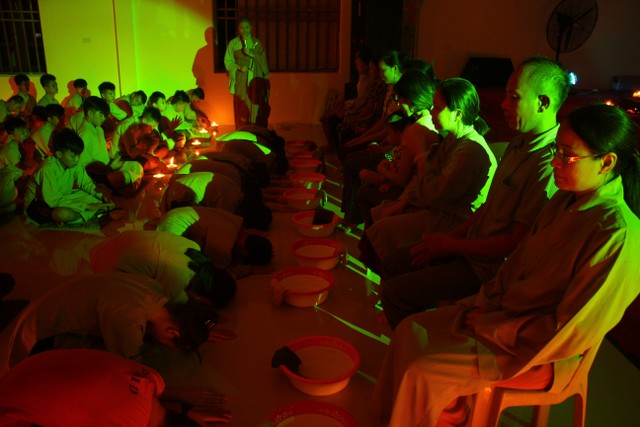 Những câu chuyện được quý Thầy kể trong khóa tu tuy giản đơn nhưng đầy ý nghĩa, khẳng định tình mẫu tử, phụ tử luôn bất diện dù người cha, người mẹ ở hoàn cảnh nào, địa vị nào. Những bức thư được chính các bạn viết, những giọt nước mắt, những tiếng nấc nghẹn ngào khi các bạn được bày tỏ lời cảm ơn và xin lỗi hai đấng sinh thành vì sự dại khờ, bồng bột của tuổi trẻ đã làm những bậc phụ huynh phải đau lòng. Trước sự chứng minh của Tam Bảo, các bạn đã đồng thanh nói lời sám hối, cầu mong chư Phật chứng minh lòng thành hiếu thảo của con trẻ và cầu nguyện cha mẹ luôn bình an, hạnh phúc. Những cái ôm, những tiếng khóc, những cử chỉ ân cần khi các thiện sinh rửa tay và lạy cha mẹ thực sự đã tạo sự xúc động lớn đối với cả giảng đường. Đêm hoa đăng – kết khóa còn có sự góp mặt của NS.Sỹ Luân với các bài hát “Vu Lan nhớ mẹ”, “Một mình mẹ” do anh sáng tác và thể hiện.