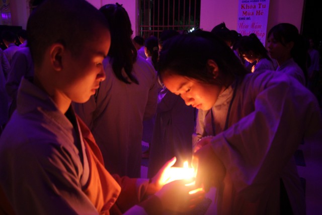 Vào tối ngày cuối cùng, trước khi bế mạc khóa tu, chia tay các thiện sinh về với gia đình, đồng thời tạo cầu nối truyền thông giữa cha mẹ và con cái, đêm hoa đăng tri ân đã được tổ chức với sự tham gia của các em khóa sinh đang tham dự khóa tu mùa hè “Ươm mầm Phật pháp” lần thứ ba và đại diện các bậc phụ huynh.
