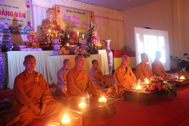 Trong tinh thần tri ân và báo ân, Thượng tọa chứng minh đã có lời đạo từ làm không khí đêm thắp nến thêm thành kính. Thầy mong muốn rằng sau ba ngày tu học ở chùa dù ngắn ngủi nhưng các bạn sẽ ghi nhớ lời giảng của quý thầy cô, học theo hạnh hiếu, trở thành người con ngoan trong gia đình. Thượng toạ cũng mong muốn, giảng đường của chùa vừa xây dựng sẽ được đón nhiều Phật tử và các bạn trẻ về chùa tu học, góp phần “Hoằng dương Phật pháp – Lợi lạc quần sinh”. Khóa tu mùa hè lần thứ ba tại chùa Hoằng Văn đã khép lại, nhưng chắc chắn rằng những gì các bạn nhỏ họ được sẽ là hành trang gieo mầm Phật pháp, để lại ấn tượng tốt đẹp trong lòng quý phụ huynh và người dân nơi đây.