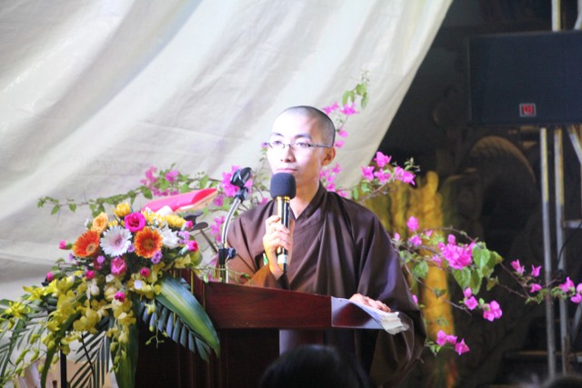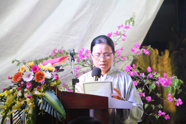 Trong không khí trang nghiêm, thành kính, TT.Thích Thanh Định đã có đôi lời đạo từ với toàn thể đạo tràng trong ngày lễ Vu Lan. Thượng tọa đã giải thích sự tích Ngài Mục Kiền Liên cứu mẹ, ý nghĩa của ngày tự tứ an cư, Vu Lan. Thượng tọa nhấn mạnh: “Là người con Phật, chúng ta cần biết báo ơn và đền ơn. Mỗi ngày chúng ta cần biết làm tròn chữ hiếu chứ không chỉ riêng trong mùa Vu Lan. Sự báo hiếu cha mẹ thù thắng nhất là hướng dẫn cha mẹ tu học theo Chính pháp, quy y Tam Bảo; bản thân biết bố thí, cúng dường để hồi hướng công đức lành cho cha mẹ”.