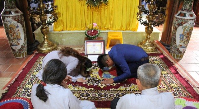 Hai bạn trẻ làm lễ hằng thuận cùng gia đình tại chùa Từ Xuyên