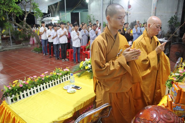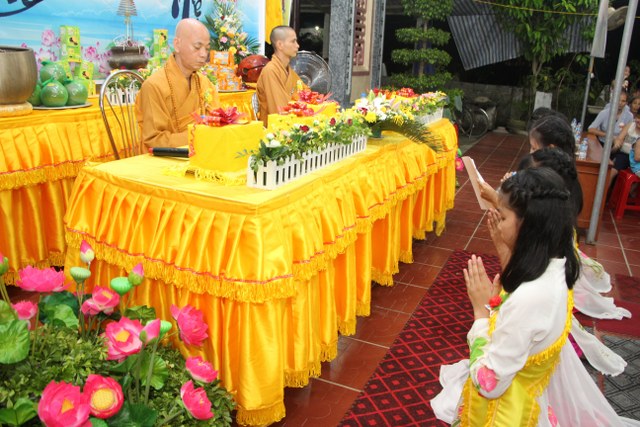TT.Thích Thanh Định, Phó ban Thường trực BTS PG tỉnh Thái Bình cùng chư Tăng chùa Từ Xuyên chứng minh buổi lễ cùng đông đảo Phật tử, bà con nhân dân trong và ngoài thôn về dự lễ.