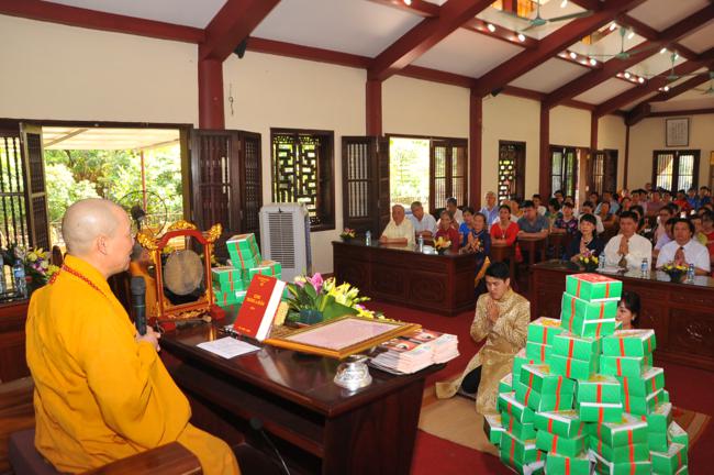 Đôi tân lang tân nương đã được lắng nghe Hòa thượng trụ trì Thích Bảo Nghiêm giảng giải về đạo nghĩa vợ chồng trong kinh Thiện Sinh. Hòa thượng khuyến tấn đôi tân lang, tân nương phải sống trọn vẹn bổn phận làm vợ và làm chồng, làm dâu hiền, rể thảo cùng xây dựng hạnh phúc gia đình.