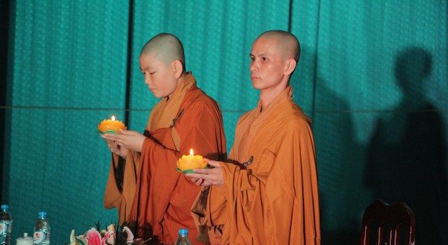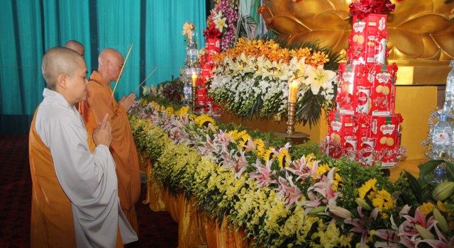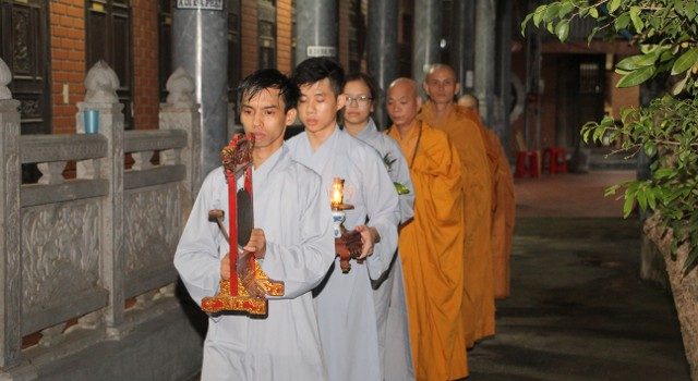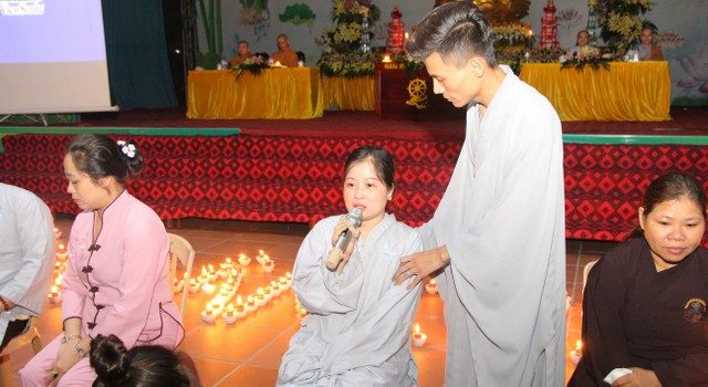 Mở đầu buổi lễ là những giây phút trang nghiêm niêm hương bạch Phật. Tiếp đến, Thượng Tọa trụ trì đã đón nhận ánh sáng từ bàn Phật truyền trao cho chư tôn đức rồi ra tỏa ra đại chúng. Trong buổi lễ các bạn đã được nghe những chia sẻ vô cùng xúc động của SC.Hương Nhũ nói về tấm lòng của cha mẹ dành cho con cái.