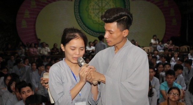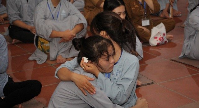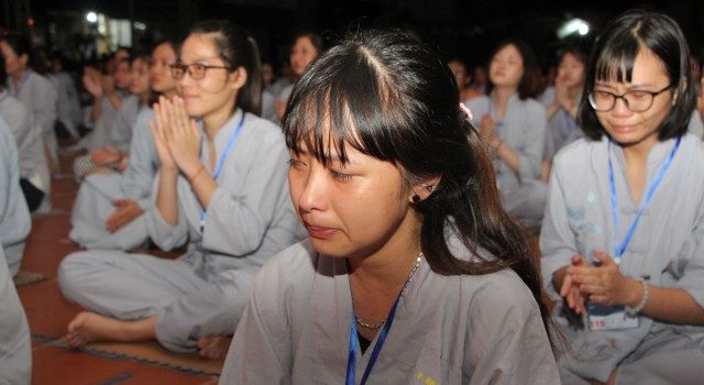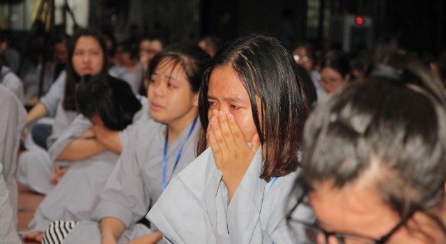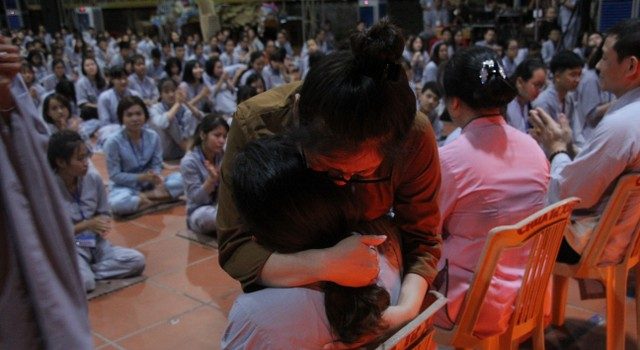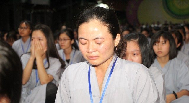 Cha mẹ - hai tiếng yêu thương và là niềm hạnh phúc nhất trong cuộc đời mỗi con người. Vì miếng cơm manh áo, vì tương lai của con, cha mẹ đã hy sinh, đổ mồ hôi, nước mắt chỉ mong cho con nên người, ngẩng cao đầu tiến về phía trước. Lúc nào và bao giờ, dù con ra sao, cha mẹ luôn vỗ về, an ủi, động viên, bao dung cho con tất cả. Thế nhưng, những nông nổi, vụng dại, bồng bột của tuổi trẻ, con giận hờn, trách móc cha mẹ, quên lãng công ơn sinh thành mà chạy theo những ham muốn, dục vọng tầm thường. Những giọt nước mắt đã rơi, nhưng cái cúi đầu ăn năn, những lời sám hối vì những cử chỉ, hành động của con cái làm cha mẹ phiền lòng. Bao nỗi niềm chất chứa như vỡ òa hoà cùng nước mắt trước sự chứng minh của quý tôn đức.