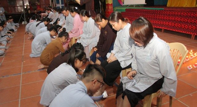 Phần xúc động nhất trong buổi lễ là nghi thức tri ân. Các bạn trẻ đã rửa chân và nói lời cảm ơn đến một số quý phụ huynh về chùa dự lễ. Hành động tuy nhỏ nhưng là nghĩa cử tri ân sâu sắc nhất, nhiều bạn đã bày tỏ nỗi niềm thầm kín từ trong tâm khi đã mất cha, nguyện cầu cho cha mẹ được siêu sinh và nguyện sống tốt để là chỗ dựa vững chắc cho gia đình. Những cái ôm, những giọt nước mắt lăn dài trên má thực sự để lại niềm xúc cảm vô biên trong lòng toàn thể đại chúng.