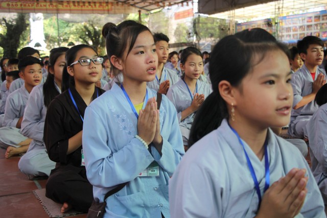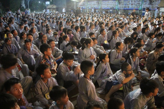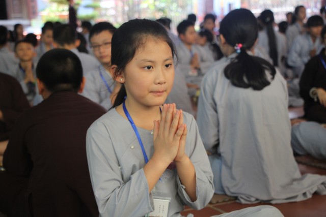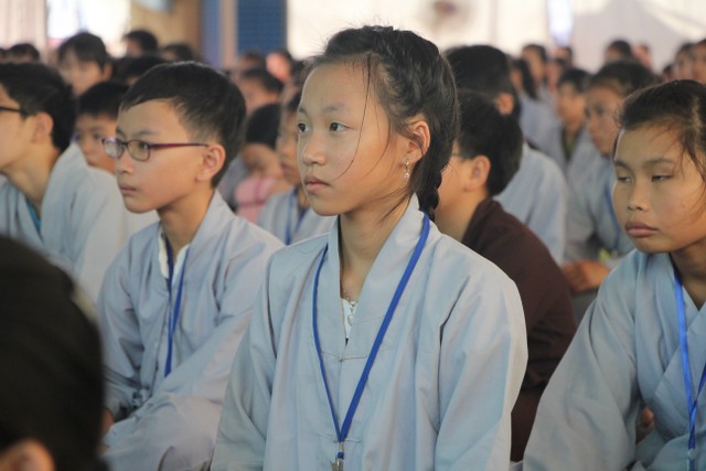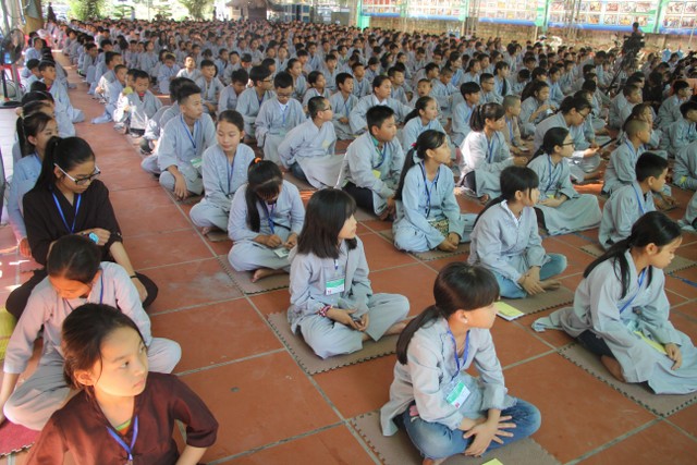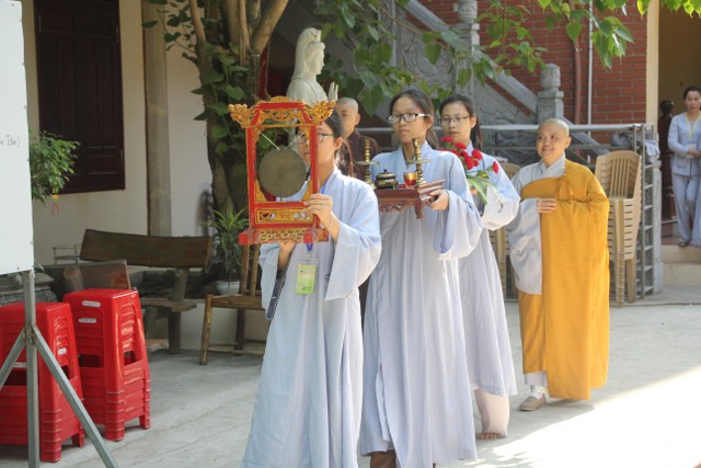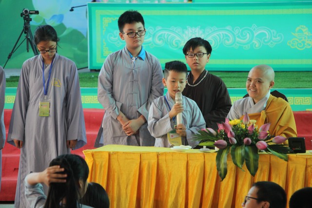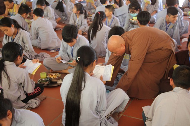 Buổi chiều cùng ngày, quý Thầy đã làm lễ quy y Tam Bảo, trang bị cho các bạn hành trang từ bi và trí tuệ của đạo Phật dựa trên nền tảng trở về nương tựa Phật – Pháp – Tăng và năm nguyên tắc đạo đức căn bản của người Phật tử. Chương trình thi văn nghệ và vẽ tranh thuyết trình tối cùng ngày đã mang lại cho các bạn thiện sinh không khí tu tập vô cùng sôi động, xua đi sự mệt mỏi của những ngày hè.